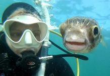 潛水遇到好奇寶寶河豚! 牠主動「湊鏡頭合影」還會找角度:偶準備好了喔~