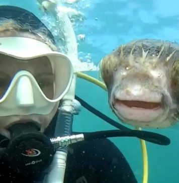潛水遇到好奇寶寶河豚! 牠主動「湊鏡頭合影」還會找角度:偶準備好了喔...